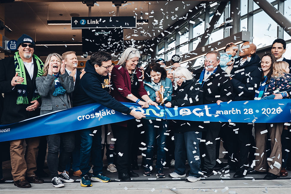 On Saturday, March 28, 2026, the Link Light Rail 1 and 2 lines connected at Judkins Station with a ribbon cutting ceremony. I was on site to cover the festivities for this historic day, photographing thousands of attendees waiting to ride the train fully over the I-90 floating bridge for the first time. The day began with remarks from Governor Ferguson, Mayor Wilson, Senator Cantwell, Senator Murray, CEO of Sound Transit Dow Constantine, and many others involved with the project. Music, performances, crafts, and community vendors popped up at stations in Seattle, Mercer Island, Bellevue, and Redmond to celebrate the feat of the engineering marvel.